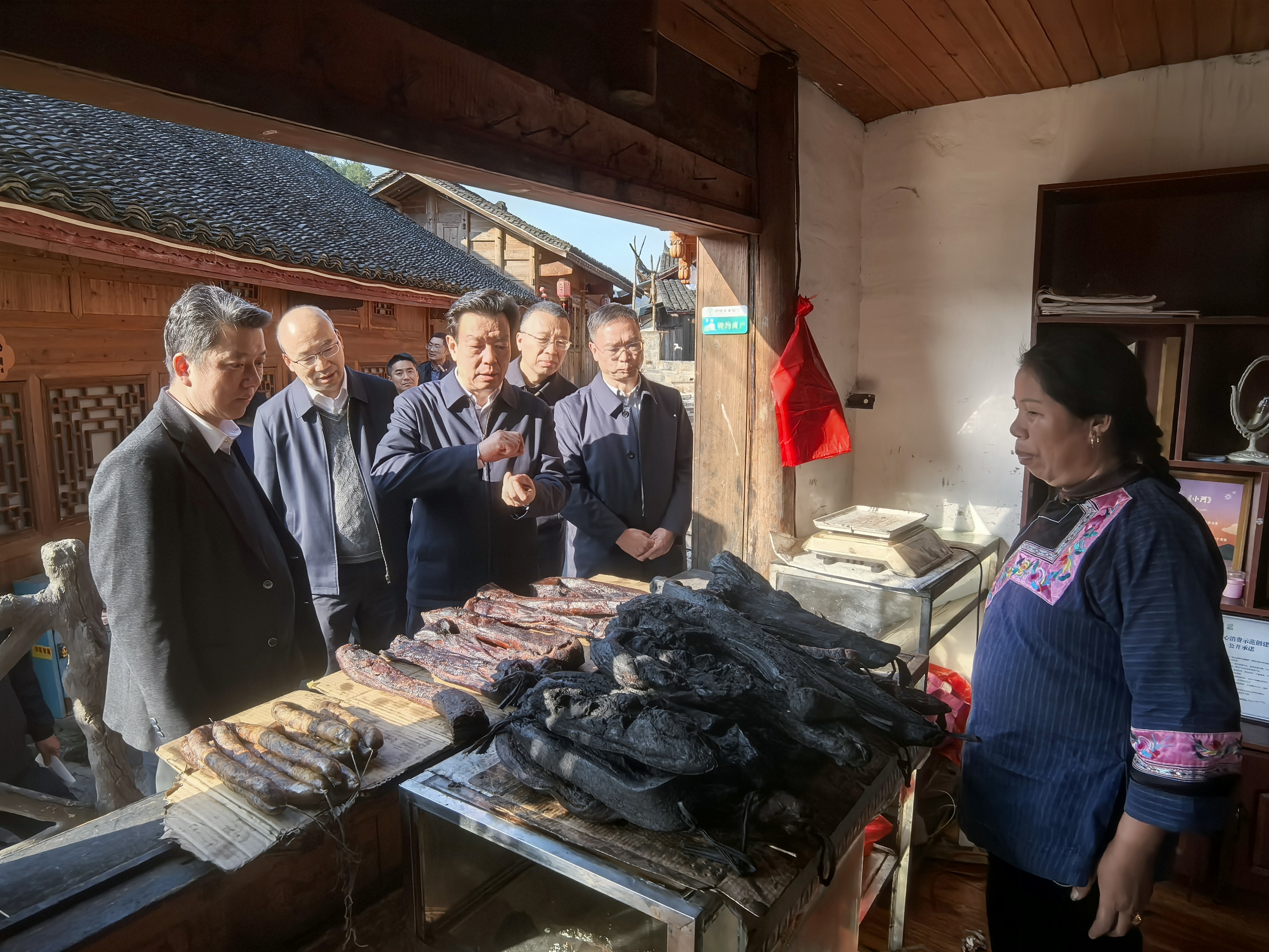 陳得信一行首先參觀了十八洞村精準(zhǔn)扶貧主題陳列,前往梨子寨苗繡基地和精準(zhǔn)坪廣場,重走習(xí)近平總書記考察足跡,詳細(xì)詢問產(chǎn)業(yè)發(fā)展、群眾增收、苗族傳統(tǒng)文化傳承等情況;調(diào)研了中國五礦援建十八洞村棧道和電商中心項(xiàng)目,排碧村人居環(huán)境改善、雙龍村美麗鄉(xiāng)村文旅項(xiàng)目,深入了解設(shè)計(jì)建設(shè)進(jìn)度和產(chǎn)品銷售情況;與十八洞村“大姐”石拔三、退休教師楊東仕親切交談,慰問雙龍村脫貧戶施繼生和施國遠(yuǎn),關(guān)心他們的生產(chǎn)生活狀況。陳得信充分肯定了中國五礦多年來定點(diǎn)幫扶花垣縣取得的積極成效,要求高標(biāo)準(zhǔn)、嚴(yán)要求推動(dòng)項(xiàng)目建設(shè),強(qiáng)化質(zhì)量、安全和衛(wèi)生管理,突出民族文化特色開展規(guī)劃設(shè)計(jì),把幫扶項(xiàng)目實(shí)施好、運(yùn)營好、管理好,充分帶動(dòng)當(dāng)?shù)匕l(fā)展、惠及廣大群眾。